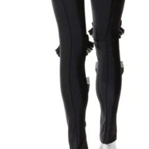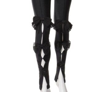 Elevate your collection with these iconic Chanel runway leggings from the coveted Métiers d’Art Pre Fall 2021A collection by Virginie Viard (Chateau des Dames collection). Crafted in luxurious black satin, this piece features delicate bow accents and artful cut-outs that embody the signature craftsmanship and couture detailing Chanel is known for.