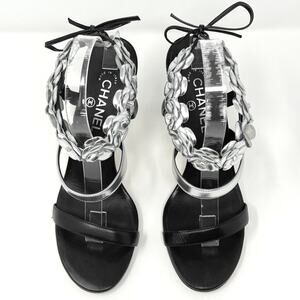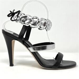 Chanel Black Silver Camellia High Heel Sandals – Size 40