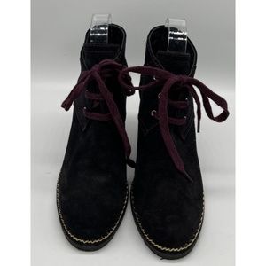 Chanel Black Suede Lace-Up Wedge Bootie w/ Chain-Link Trim + Gold CC Logo sz 39