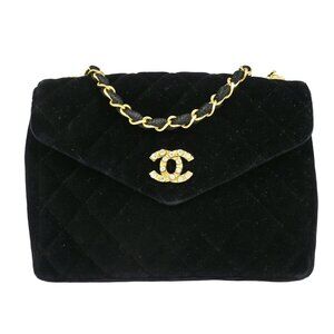 Chanel Black Velvet Chain Shoulder Bag XX40378