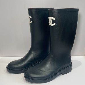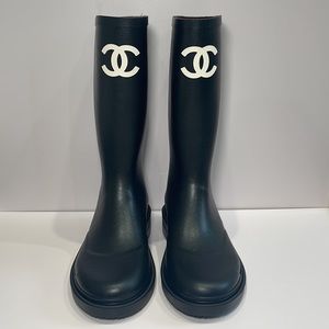 Chanel Black Wellington Rain Boots size 37 BNIB Wellies