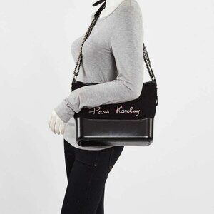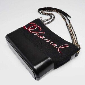 Chanel Black Wool/Leather Paris-Hamburg Medium Gabrielle Hobo Bag