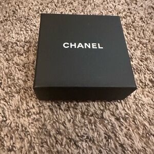 Chanel earrings featuring a bold black design with intricate gold detailing. Stylish and sophisticated.