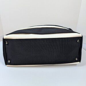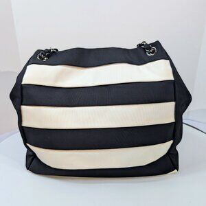 Chanel Black and White Striped Fabric Shopping Tote
