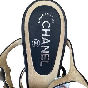 *Overall, very good pre-owned condition: All accents in place. Interlocking CC in place. Logo on insole is good/not faded. Some discoloration at insoles; moderate scuffs at soles; minor creasing at strap