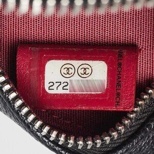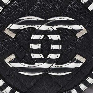 Chanel Black/White Quilted Caviar Leather Filigree Vanity Round Clutch