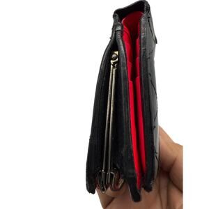 This is a beautiful compact wallet. It is a kisslock on one side and bi-fold opening on the other. The wallet is in very nice used condition. Please look closely at all pictures.