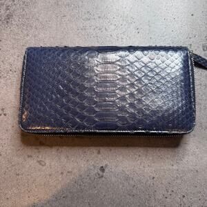 Chanel Blue Exotic Python Leather Wallet Navy Zippy Luxury Designer SHW