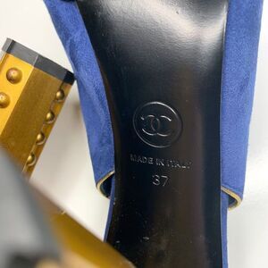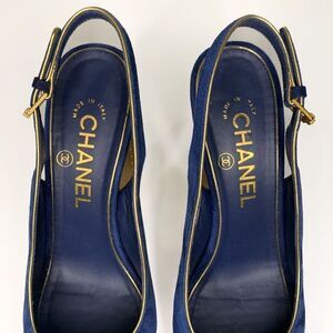 Chanel Blue Suede Gold Studded Interlocking C Slingback Heels EU 37 Typically equivalent to a US 6-6.5