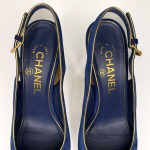 Chanel Blue Suede Gold Studded Interlocking C Slingback Heels EU 37 US 6-6.5