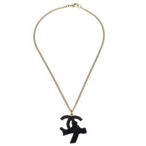 Chanel Bow CC Chain Necklace Pendant Gold Black 07C 133917