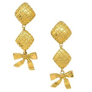Chanel Bow Dangle Earrings Clip-On Gold 113274