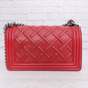 Chanel Medium Boy Bag Red Calfskin Leather Crossbody and Shoulder Purse