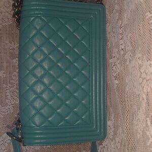 Chanel Boy Bag Turquoise Quilted Lambskin Authentic Rare Like New