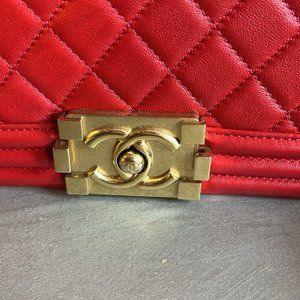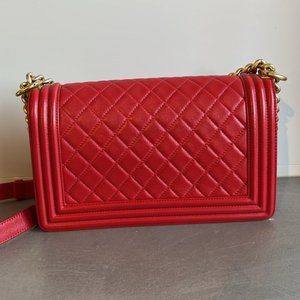 Chanel Boy Red Medium Quilted Leather Flap Bag
