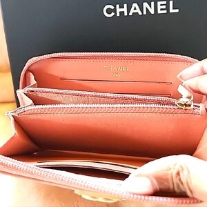 This exquisite Chanel wallet showcases a luxurious quilted leather design in a stunning pink hue, adorned with the brand's signature gold hardware. Its elegant craftsmanship and timeless style make it a perfect accessory for any sophisticated ensemble. Hologram intact and made in Spain! Slightly used in perfect condition 👌