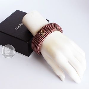 Chanel Bracelet Bangle 13A Pink Multicolor Tweed Knit with Gold CC Logo in Box