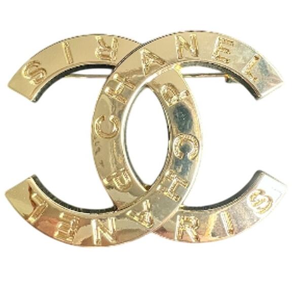 Chanel Bright Gold Tone Interlocking Signature Paris CC Brooch