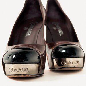 Chanel Brown Patent Leather Mirror Platform Pumps