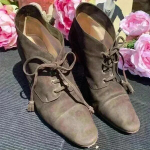 Chanel Brown Suede Heeled Booties Size 8