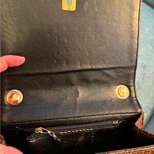 Chanel Brown and Gold Crocodile Embossed Clutch