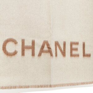 Chanel Brown and White Two-Tone Cashmere CC Logo Blank Shawl