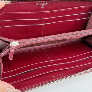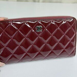 Chanel Burgundy Patent Leather Wallet with Classic Quilted Design