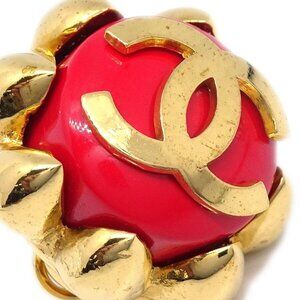 Chanel Button Earrings Clip-On Red 29 112540