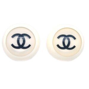 Chanel Button Earrings Clip-On White 01P 164130