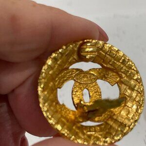 Overall good preloved condition. These vintage Chanel earrings are gold toned with a lattice design in matte. Please take a moment to look at photos. These are clip on earrings. Size: 1.3" in diameter.