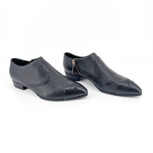 Chanel CC Black Leather Cap Toe Western Ankle Booties Oxfords Size 38.5 US 7.5-8