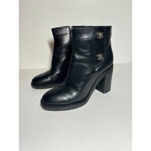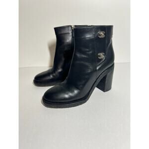 Chanel CC Black Leather Interlocking C Turnlock 3.5" Heel Boot Size 41 EU 11 US