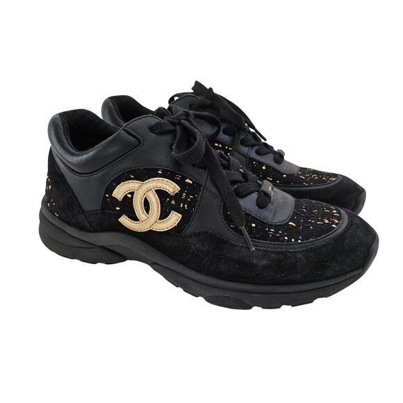 Chanel CC Black Suede Trainer Sneakers US 8.5 / EU 38.5