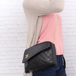 Chanel CC Camera Black Lambskin Leather Camera Bag Shoulder and Crossbody Purse