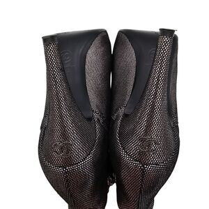 Chanel CC Cap Toe Ankle Heel Boot Size 37 US 6 6.5 Silver Metallic Leather Zip