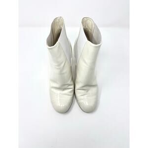 Chanel CC Cap Toe Chelsea Patent Leather Boots Block Heel Ivory EU 37