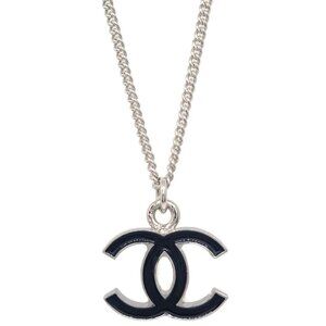 Chanel CC Chain Necklace Silver Black 05V 176653