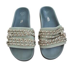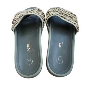 #ChanelSlides #ChanelSandals #CCLogo #ChanelChainSlides #ChanelShoes #LuxurySandals #KhakiGreen #FlatDesignerSandals #AuthenticChanel #SummerStyle #ChanelLuxe