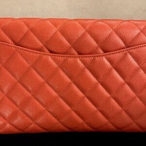 Chanel CC Classic Quilted Leather Flap Shoulder Bag Clutch Orange Gold Shine NIB