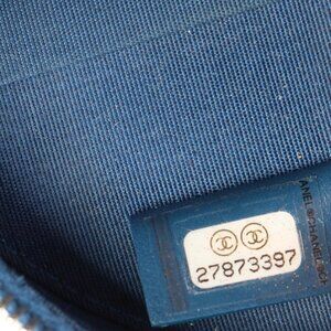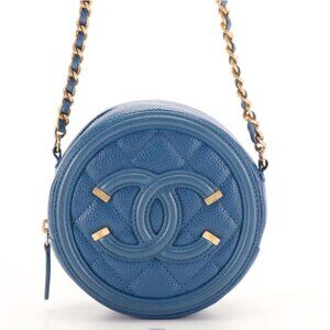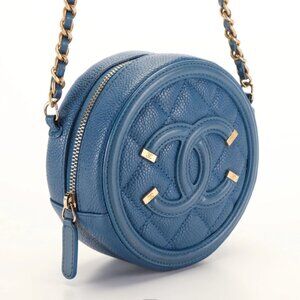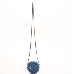 Chanel CC Filigree Round Clutch with Chain in Blue Quilted Caviar Leather