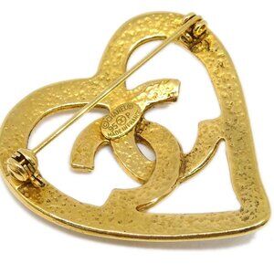 Chanel CC Heart Brooch Gold 95P 123483