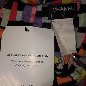Grey Authentic Vintage Chanel Long Top with Multicolor print featuring interlocking CC print throughout.