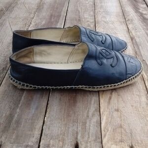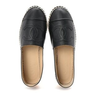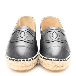 Chanel CC Lambskin Black Leather Espadrilles size 38