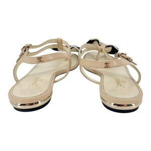 Chanel CC Logo Bow Pearl Leather Sandals Wide Fit