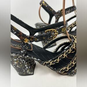 Chanel CC Logo Chain Link Ankle Strap Sandal Heel Python Mule size 38 EU 7.5 US