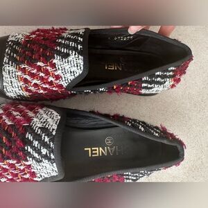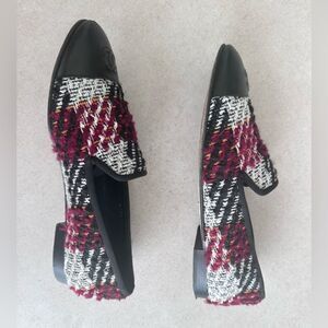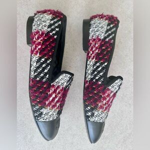 Chanel CC Logo Leather Cap Toe Multicolor Tweed Flat Loafers EU 38 US 7-7.5
