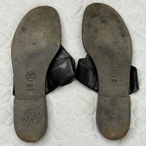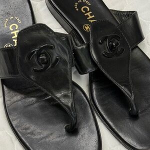 Chanel CC Logo Leather Thong Sandals in Black Made in Italy Size 37.5