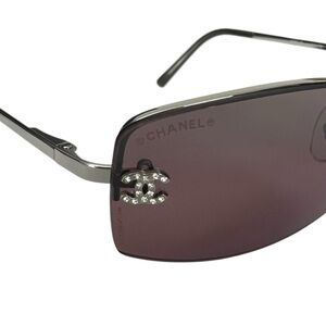 Authentic Chanel CC Logo Rhinestone Rimless Sunglasses