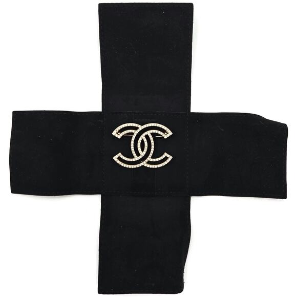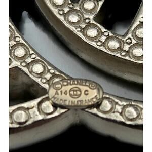 Chanel CC Logo Shaped Brooch Pin Rhinstone Crystal Details Jewelry Silver Tone