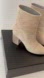 Chanel, Chanel boots, designer boots, luxury style, Chanel shoes, fall fashion, winter style, chic boots, beige boots, taupe boots, suede boots, short boots, block heel, high-end fashion, French fashion, minimalist style, iconic Chanel, size 40, women's shoes, , statement boots, authentic Chanel, preloved luxury, neutral tones